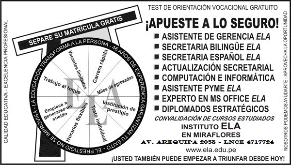 En la década de los 80', vislumbramos la evolución previsible de la carrera secretarial hacia más altos niveles en la pirámide ocupacional, y creamos el Programa para Asistente de Gerencia, dirigido a todas las Secretarias Ejecutivas. Desde esa fecha, han egresado muchas promociones integradas por participantes tanto del sector privado como público que triunfan, tanto en nuestro país, como en el extranjero. En la actualidad estamos constituidos como Instituto de Educación Superior para ofrecer carreras profesionales de 3 años con certificados a nombre de la nación, así como, toda una gama de Diplomados, Actualizaciones y Conferencias. En este trayecto, presentamos la carrera de Administradora Ejecutiva, dirigida a las Secretarias Ejecutivas y Asistente de Gerencia, cuyo objetivo principal consiste en canalizar conocimientos y experiencias a favor de mejores oportunidades de trabajo, responsabilidades y remuneraciones. |